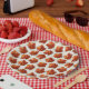This is a pattern of sugary sweet Canadian maple syrup candies! The candies are coloured in the deep orange and rich brown hues that is characteristic of maple candies, and are drawn in the traditional maple leaf moulded shape. This pattern is a great gift for foodies who love maple candies and Canadians alike! :)
