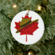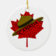 Canadian Mountie Hat on Red Maple Leaf Ceramic Ornament