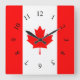 Canadian Red and White Maple Leaf Canada Square Wall Clock