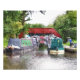 Canal boats, known in the UK as narrowboats, were originally used to transport goods around the country. They are now used mainly for leisure and attract people from all over the world to enjoy our rural countryside. These boats look very pretty with their brightly coloured cabins, traditionally blue, red or green. Flowers and castle designs also adorn the more traditional boats. Digital watercolor.