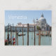 Postcard of gondolas and gondoliers on the water of the Canal Grande with the Santa Maria della Salute church in the background creating a romantic city landscape during the summer holidays in Venice, Italy with the text: 'Venezia'.