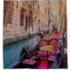 Canal with traditional gondola in Venice, Italy. Venice postcard. Inside gondola