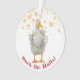 Un des côtés de cet ornement fantaisiste a un canard pekin blanc portant une aquarelle verte et une couronne de baies. De l'autre côté, on trouve une jolie couronne d'aquarelle avec le message "Joyeux Noël". Toute copie peut être modifiée et personnalisée à votre gré à l'aide de l'outil personnaliser.