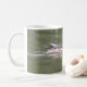 Cette tasse à café présente une photo d'un beau canard brun aux plumes d'aile bleu vif. Le canard nage sereinement sur un lac calme. Vous pouvez même voir le reflet de cet oiseau magnifique sur l'eau. Le design est présenté ici sur une tasse à café blanc basique, mais est également disponible sur beaucoup d'autres styles et couleurs de tasses.