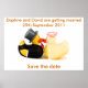 Deux canards en caoutchouc jaunes mignons déguisés en mariée et marié. Deux canards s'embrassant Carte de sauvegarde de date personnalisable avec votre propre message, noms, sauvegarde de date ou ajoutez votre propre image.