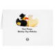 Deux mignons canards en caoutchouc jaune habillés en marié et en marié. Top chapeau et queues avec perles. Deux cartes de canards baisants avec texte personnalisable pour votre propre message spécial, noms, enregistrer la date ou ajouter votre propre image.