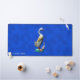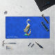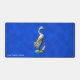 Un canard en bois peint et sculpté avec son canard, lourdement patiné, sur un arrière - plan bleu. Ajoutez votre propre texte.