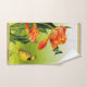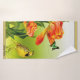 Belle image d'un oiseau jaune avec une fleur d'orchidées orange avec un papillon vert et noir volant à côté du plante tropical.sur une image d'impression d'huile