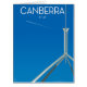 Canberra Australian travel poster art featuring contrails and the Australian Parliament.