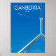 Canberra Australian travel poster art featuring contrails and the Australian Parliament.