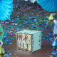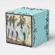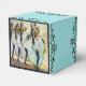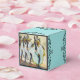 Square light blue classic style favour box with a beautiful vintage image, on the front and back, of four French Cancan dancers. Black scrollwork detailing on sides and top. See the entire Cancan Favour Box collection in the PARTY FAVORS section.