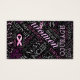 Partagez un message important avec ce design carte de visite élégant qui comprend une conception de nuage de mots de sensibilisation au cancer du sein. Certains des mots inclus sont : Espoir, Amour, Croire, Foi, Courage, Sensibilisation, Soeur, Mère, Fille, Tante, Grand-Mère, Puissant, Penser rose avec des rubans de sensibilisation au cancer du sein rose partout. Idéal pour des événements de sensibilisation, des promenades, des causes caritatives et toute occasion d'attirer l'attention sur cette cause. Choisissez une couleur et une personnaliser arrière - plans en augmentant ou en diminuant la taille du motif et en utilisant les boutons fléchés pour déplacer le texte et les rubans selon votre goût. Recherchez ID261 pour voir ce motif sur des produits correspondants supplémentaires.