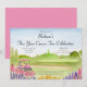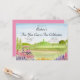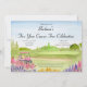 This watercolor of a pine lined golf course featuring a cheerful pink golf cart, framed with soft pink astilbe and blooming Russian sage, sets the perfect tone for a joyful cancer-free celebration invitation.
