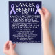 This beautiful cancer benefit flyer is perfect for advertising any cancer benefit and auction once you personalize with all your own benefit details in the provided boxes. The purple ribbon also represents any and all types of cancer as the universal cancer awareness ribbon.