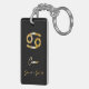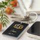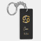 Elegant zodiac sign keychain with gold design on black background.