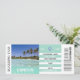 This unique, modern and fun faux airplane boarding pass / ticket to Cancún International Airport has been designed to allow you to custom edit the point of departure; arrival; the date; time and place you will be flying to and from for your special wedding, bachelor or bachelorette party. This particular design has a colour photograph of a sparkling and clear turquoise sea blue ocean set in front a sandy white beach dotted with palm trees as a backdrop. Change the background colour to any colour of your choice and use the edit button to explore all custom functions you can use. These are ideal for exotic beach or tropical island weekend getaways for men and women or for any beachy, coastal destination wedding; anniversary; birthday or bridal do.