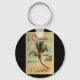 A uniquely retro mid-century modern Cancun Mexico art print in vintage travel poster style. It features a curved palm tree on sandy beach with ocean under a blue cloudy sky.