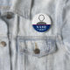 Badge button with your custom candidate name and year. White text flanked by stars on a blue background with a red stripe above. Fill in the name of your favourite political candidate and customize the photo.