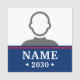 Photo badge with your custom candidate name and year. White text flanked by stars on a blue background with a red stripe above. Fill in the name of your favorite political candidate and customize the photo.