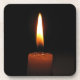 Light up your life with this set of elegant hard plastic cork back coasters. They feature simple still life photography of a brown candle with a lovely flame in shades of white, yellow, gold and orange and are set on a pure black background.