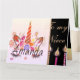 Adorable unicorn face cake with candles and name cover. Pink background inside with Happy Birthday to you and personalized message! Sure to make any little princess smile!