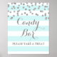 Candy bar sign poster for baby shower, bridal shower, or wedding in light baby blue and white stripes pattern with silver confetti, please note silver is photographic effect only. Perfect for a baby shower, wedding, or bridal shower.