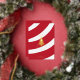 This Christmas card contains a mixture of geometric, Art-Deco-like style with a looser, casual appearance. Featuring a candy cane pattern background, it also has metallic foil portions and a customizable sender name. The sender name can be altered by clicking on the blue "Personalize this Design" button.