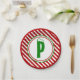 Candy Cane Basics Red/White Monogram Paper Plate