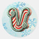Candy Cane Christmas "V" Sticker, Festive Stripes Classic Round Sticker