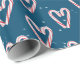 Candy Cane Hearts And Snowflakes On Blue Wrapping Paper