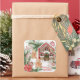 This design features candy cane house, gingerbread man and woman, gingerbread Christmas tree, poinsettia and branch of pine on a snowy background.