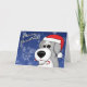 This cute grey and white OES wears a Santa cap and is holding a red & white striped candy cane firmly in his fuzzy mouth. The background is blue with snowflakes falling everywhere. Perfect for the holiday season, our Old English Sheepdog Christmas Cards are loved by bobtail owners everywhere. Merry Christmas!