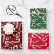 Cute candy cane pattern is festive on these wrapping paper sheets. Each sheet displays the pattern on a different coloured background. Red, maroon, and green backgrounds. This Christmas holiday season gift wrap will make your gift presentation whimsical and fun.