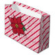 A festive red Christmas poinsettia decorates this peppermint striped holiday gift bag. This classic gift bag is great for anyone. The design is from original art.