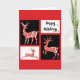 Candy Cane Reindeer, Holiday Greeting Card; Modern/Trendy holiday card, with panels of candy cane filed reindeer on black and white, and the sentiment Happy Holidays in the upper right corner. Inside of card is blank, ready for your handwritten note, or customize before you buy and add your own inside sentiment/signature.