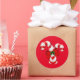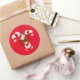 Sticker shown with a festive holiday candy cane print.
