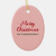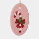 Candy Cane With A Bow And Christmas Holly On Pink Ceramic Ornament