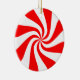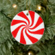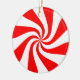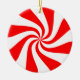 Christmas ornament shown in a round shape with a cute candy peppermint print.
