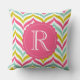 Candy Coloured Chevron Waves Pattern Monogram Throw Pillow