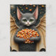 An adorable cat bat hybrid holding a pile of candy corn AI generated art for Halloween and the autumn season