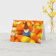 The whimsical design features a photo of a little ceramic gnome in a bowl of candy corn. A festive, cute Halloween image!