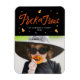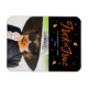 Cute Halloween magnet featuring "Trick or Treat" displayed in an orange handwritten script surrounded by candy corn and purple, off-white, yellow, and orange dots. Personalize the colourful Halloween magnet by adding your family name, the year, and a photo.
