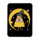 Candy Corn never but sweeter! Candy Corn Witch T-shirts, hoodies, trick or treat tote bags, mugs, cards, stickers, magnets, buttons, and other Halloween apparel and gifts with a cute candy corn with eyes, arms, legs, and a witch hat on a stars and harvest moon background.