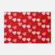 A pattern of ubiquitous candy conversation hearts reading “Love You”, “Be Mine”, "Kiss Me", "XOXO" and “Hug” in red, rose, and pink cascading over a Valentine red background