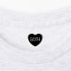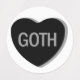 A grayscale candy heart that says, "GOTH."
