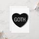A grayscale candy heart that says, "GOTH."