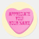 A vintage candy heart. Customized. Such a great way to thanks! Appreciate you! or any message you want. Personalized with your name.