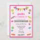 Birthday invitation with candy land design and vibrant pink colour combination.