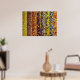 This poster features an assortment of all kinds of candy in every colour of the rainbow (yellow, chocolate, brown, orange, red, green, blue, white and gold) to form a mouth watering abstract pattern.