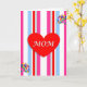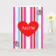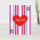 This bright glossy greeting card includes pink, blue, white and red candy stripe background with a big red heart with the word "Mom" in the centre. This will wow your mom for Mother's Day". The inside of the card reads "Thank you for being there for me mom! Happy Mother's Day"! Personalize with your names to make this card special.